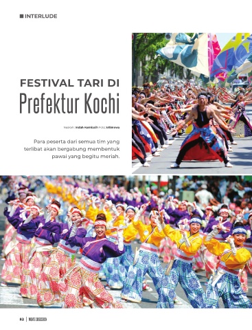 ■ INTERLUDE FESTIVAL TARI DI Prefektur Kochi Naskah: Indah Kurniasih Foto: Istimewa Para peserta dari semua tim yang terlibat akan bergabung membentuk pawai yang begitu meriah. 82 |