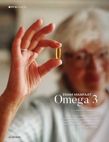 ■ FIT & HEALTH Omega 3 ENAM MANFAAT Naskah: Angie Diyya Foto: Freepik/Istimewa Asam lemak omega 3 diketahui menyimpan beragam manfaat bagi kesehatan. Manfaat ini tak hanya berkaitan dengan kesehatan fisik, tetapi juga mental. 24 |