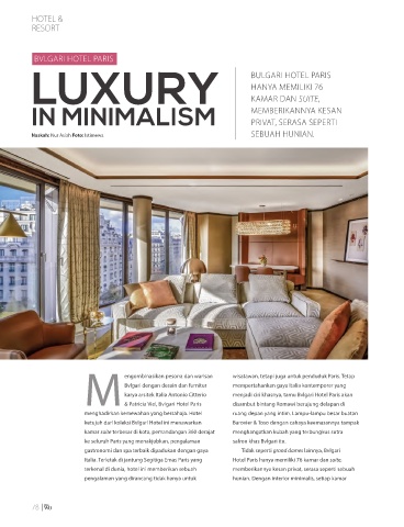 karya arsitek Italia Antonio Citterio menjadi ciri khasnya, tamu Bvlgari Hotel Paris akan