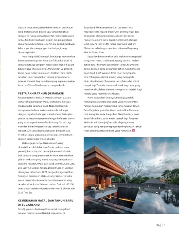 balutan gaya khas Seminyak. Makase dan SugarSand, diikuti dengan pesta pergantian tahun. Koki berbakat