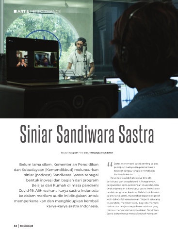 siniar (podcast) Sandiwara Sastra sebagai “ Nadiem Makarim.